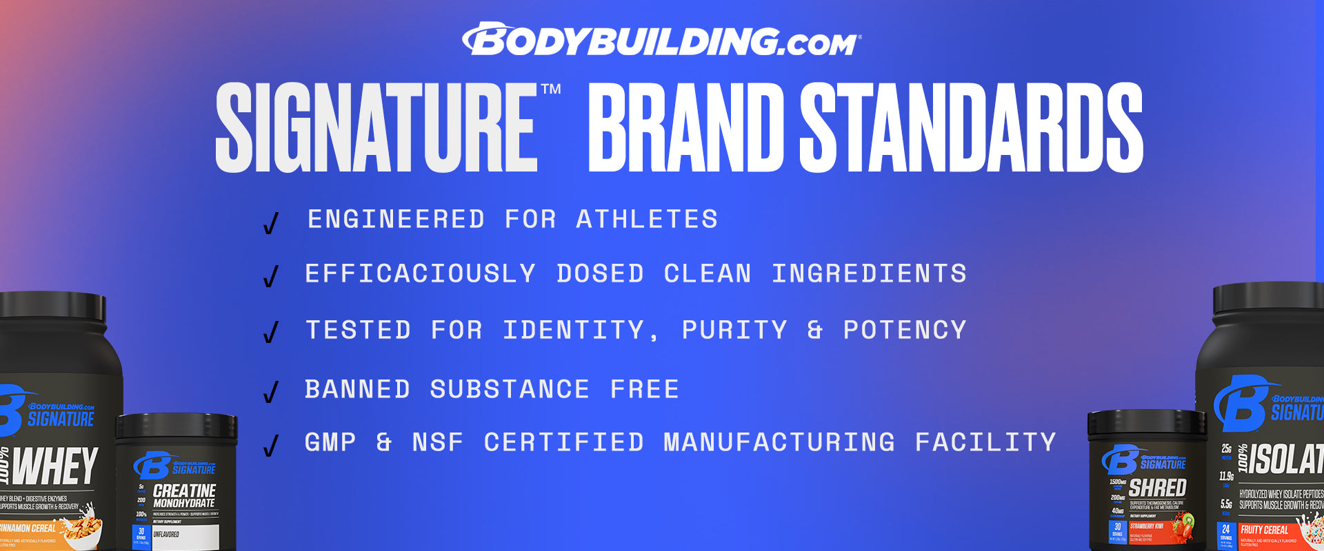 Trendy, flash-in-the-pan ingredients come and go. But time-tested, gym-proven ingredients are what you need to help you achieve your fitness goals. That’s what you’ll find in Signature products because that’s what works.”</p>